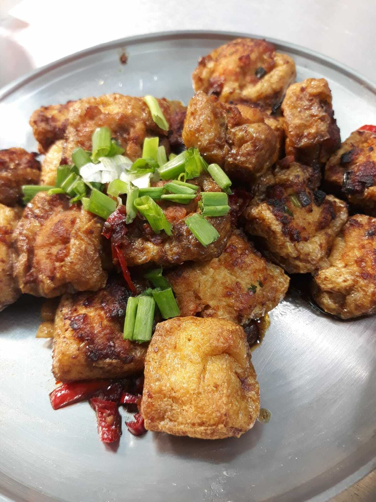 3. Pour oil into wokpan. When oil is hot, fry stuffed taupok till golden brown.